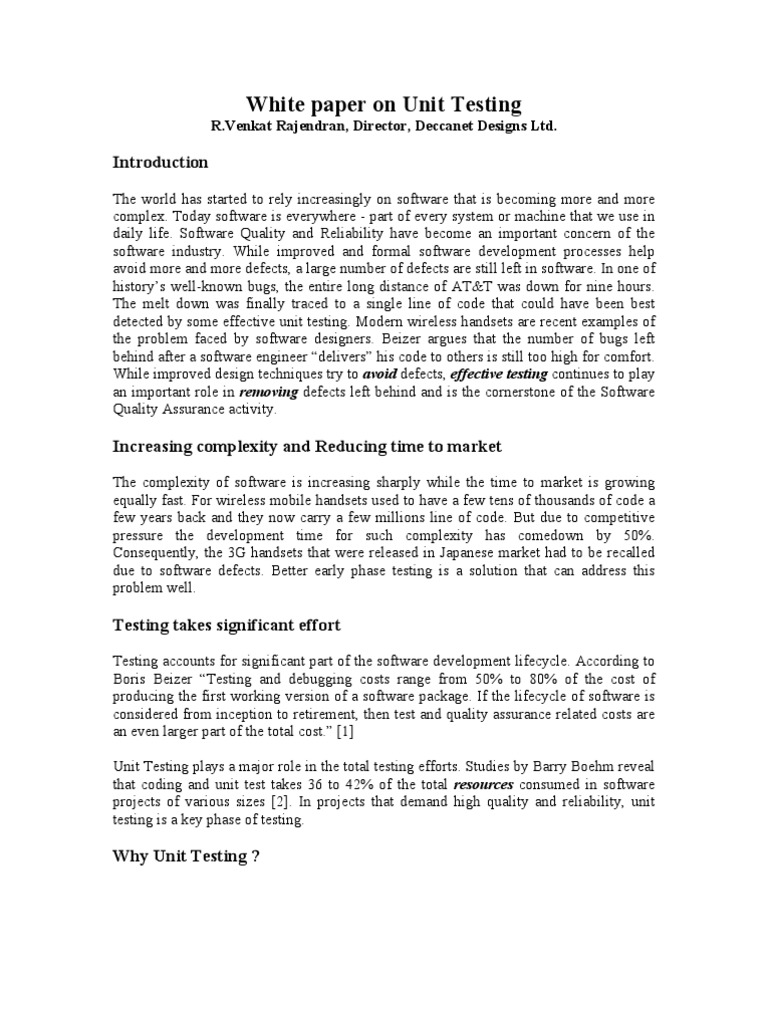 involving increased effort and time. Unit testing takes significant time and effort. Unit
