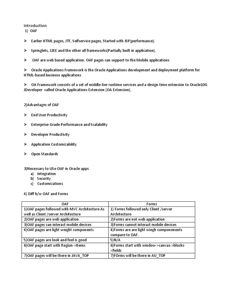 6)OAF page start with Region->Items 6)Forms start with window->canvas->blocks-