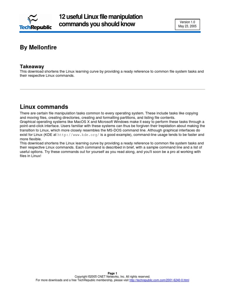 This download shortens the Linux learning curve by providing a ready reference to common file system tasks and