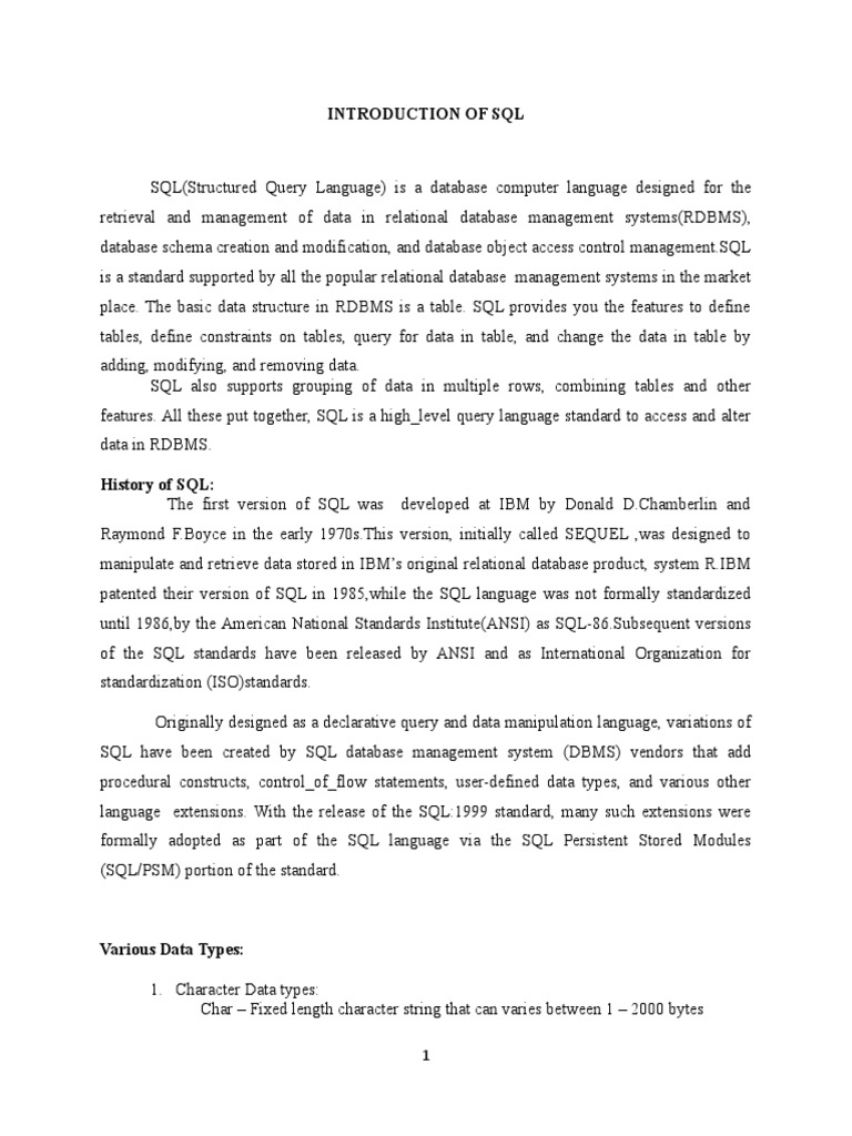 The first version of SQL was developed at IBM by Donald D.Chamberlin and