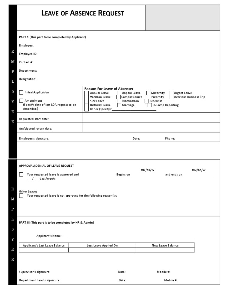 0 Initial Application Annual Leave Unpaid Leave Maternity Urgent Leave