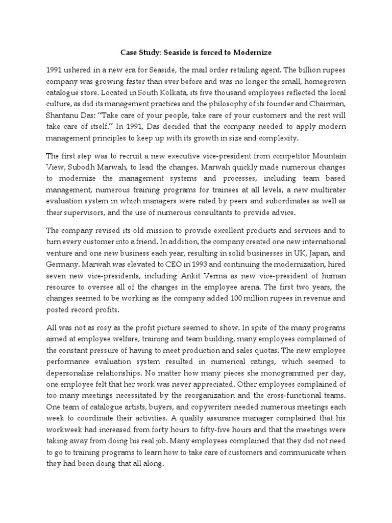 1. How would you characterize the two sets of changes made at Seaside? Which set