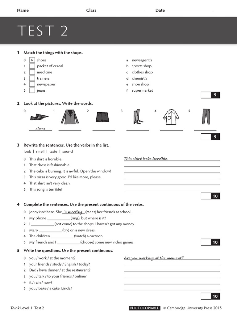 Think Level 1 Test 2 PHOTOCOPIABLE © Cambridge University Press 2015