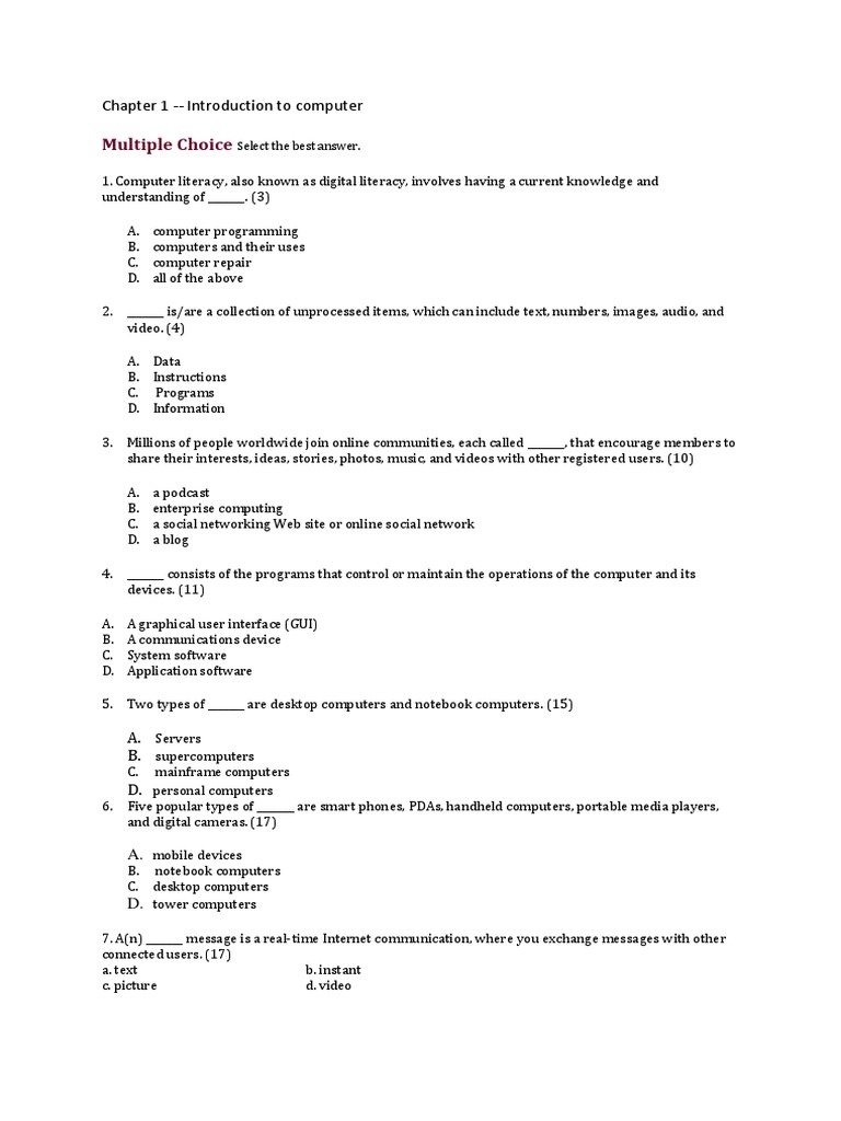 1. Computer literacy, also known as digital literacy, involves having a current knowledge and