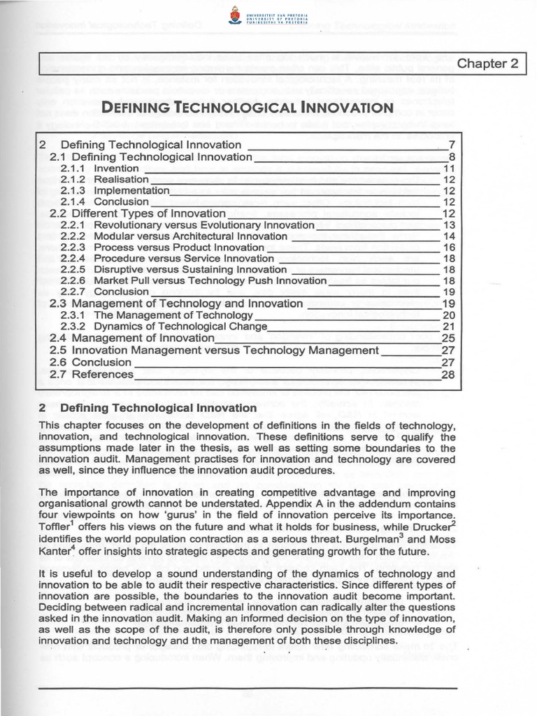 technology into the meaning of innovation, and defining the term 'Technological