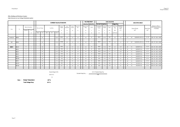 Design Circuit Group Temp Corr. Permitted Volt Calculated Tabulated Calc.Volt Tab.Volt