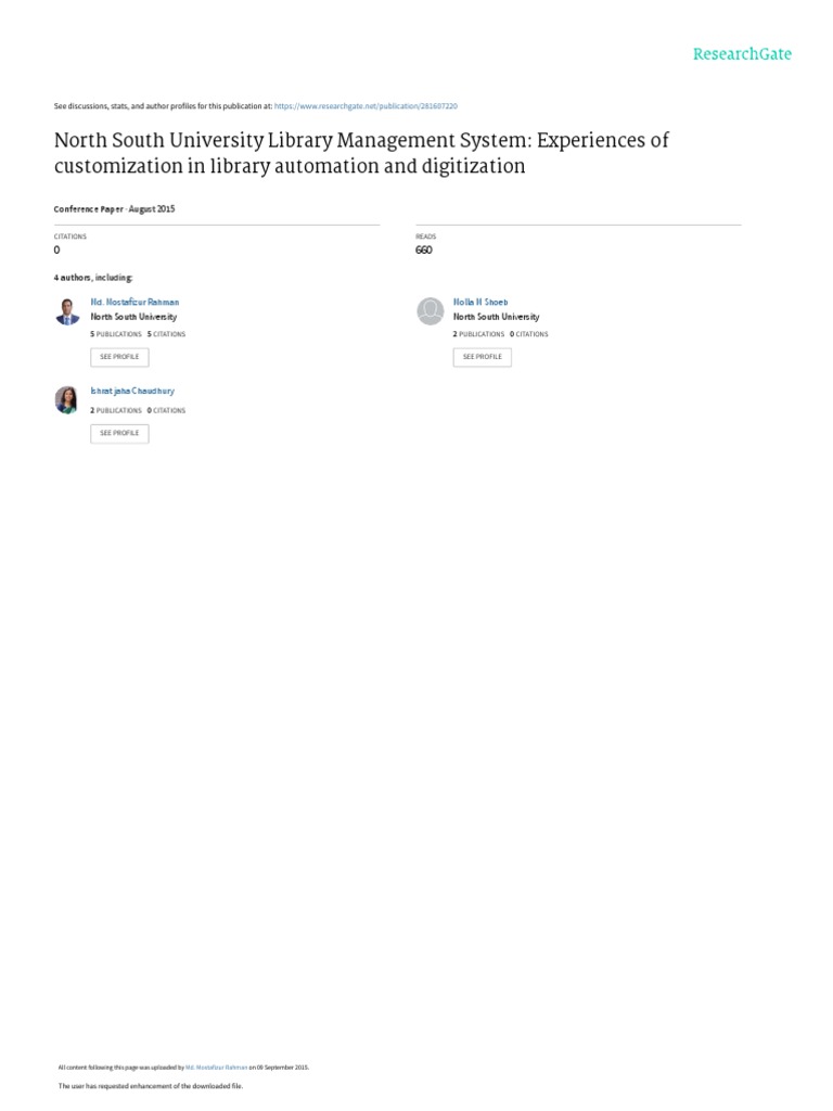developed a customized integrated library management system, i.e. NSU-LMS by the students and library