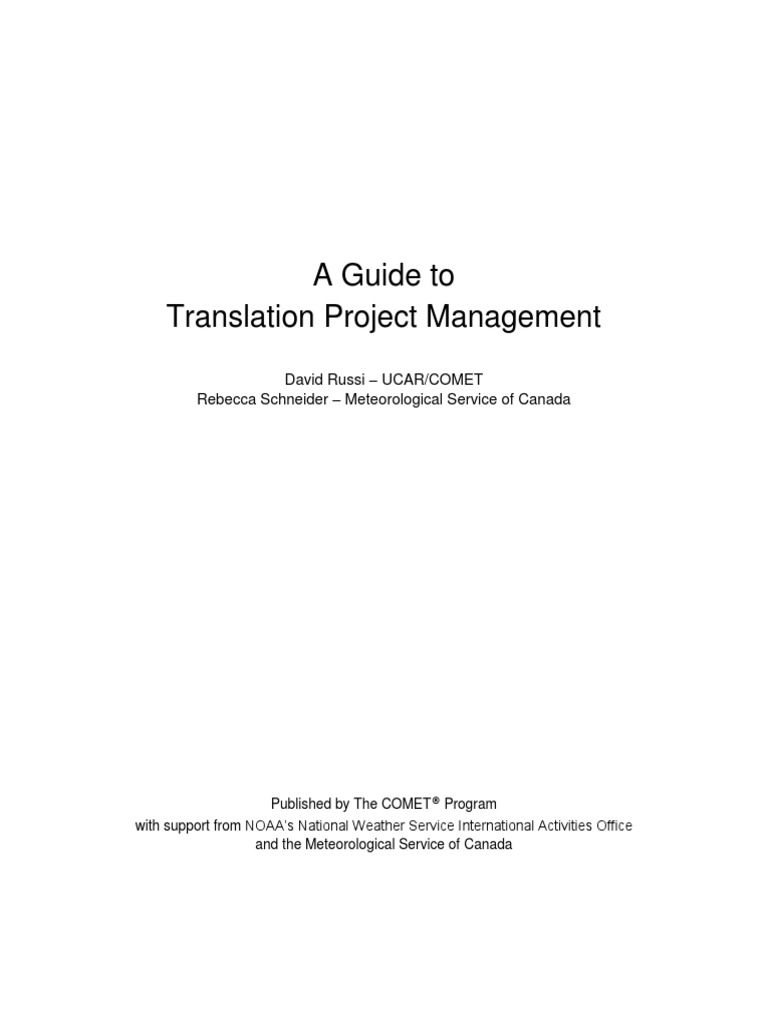 This Guide to Translation Project Management provides a set of written guidelines meant to