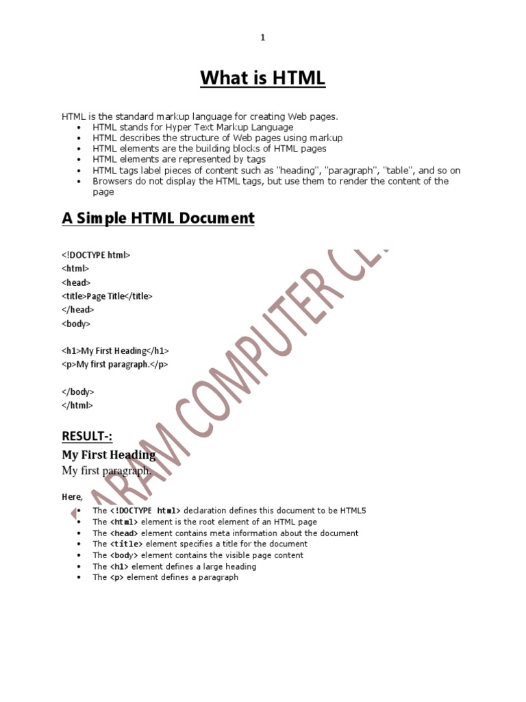 Note: Only the content inside the <body> section (the white area above) is displayed in a browser.