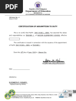CERTIFICATION OF ASSUMPTION TO DUTY