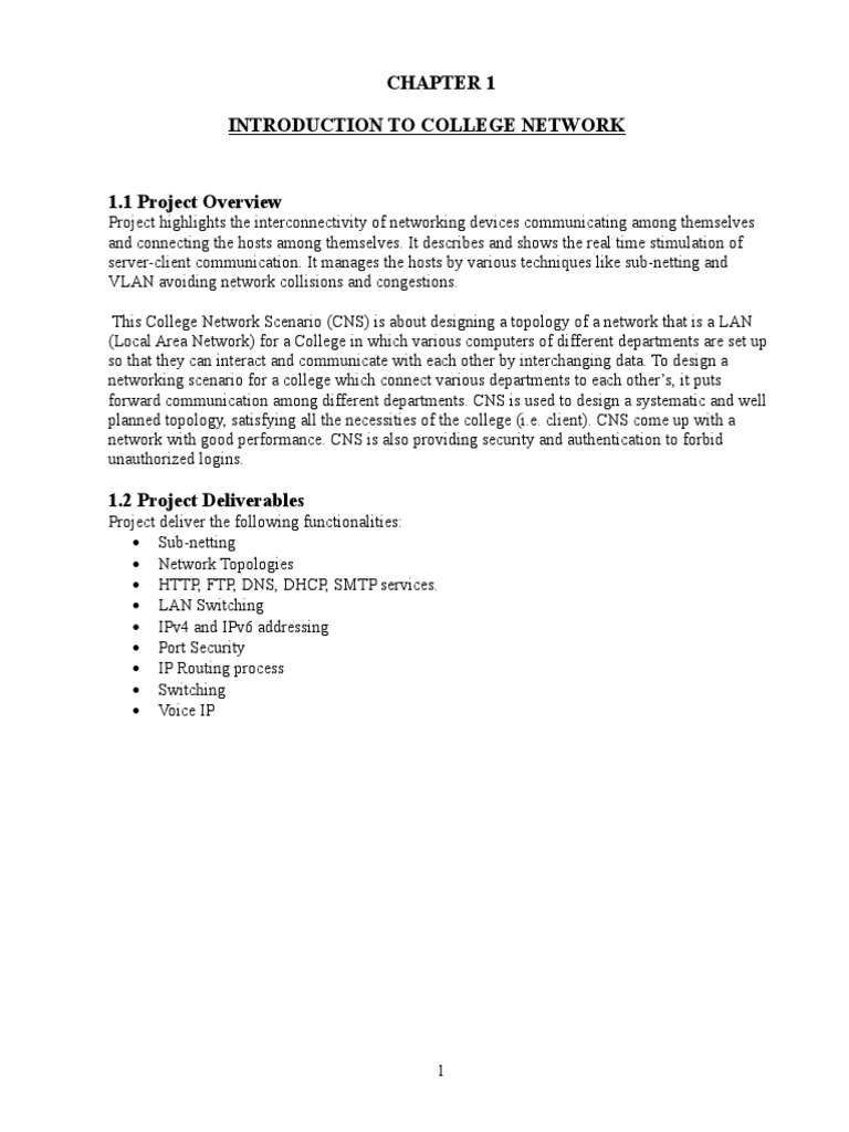 This College Network Scenario (CNS) is about designing a topology of a network that is a LAN