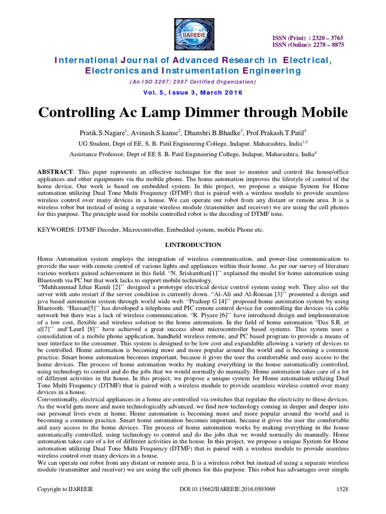 Copyright to IJAREEIE DOI:10.15662/IJAREEIE.2016.0503069 1528