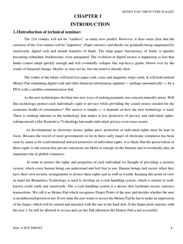 The money pad device is capable of carrying Digi-cash and hence it is useful to perform any kind
