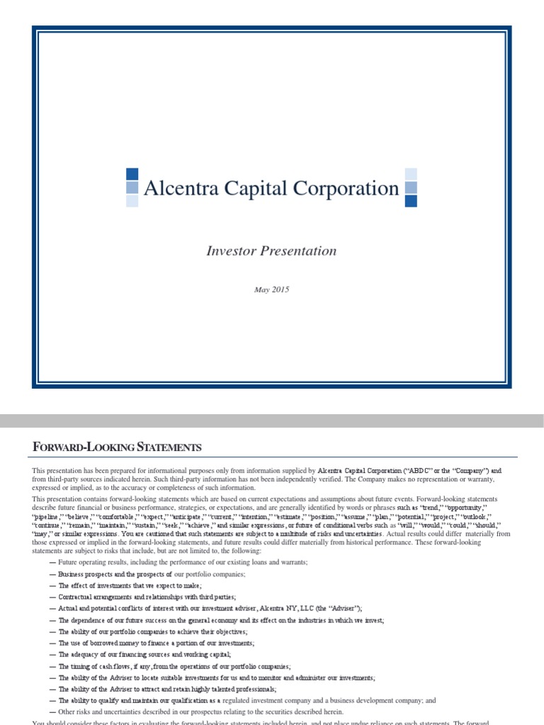 This presentation has been prepared for informational purposes only from information supplied by Alcentra Capital Corporation (“ABDC” or the “Company”) and