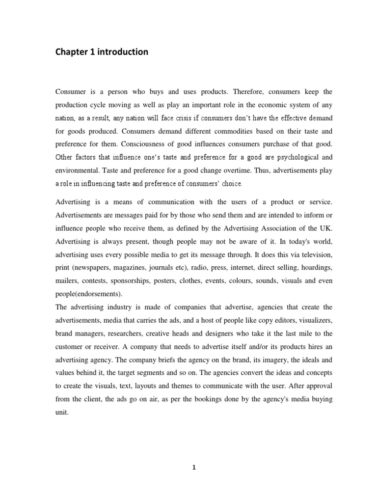 The conclusion of this report was that advertisement plays a vital role in the buying