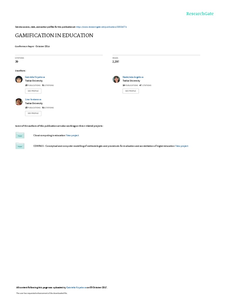 GamifyingEducation.org. (n.d.). Retrieved from GamifyingEducation.org: http://www.gamifyingeducation.org/