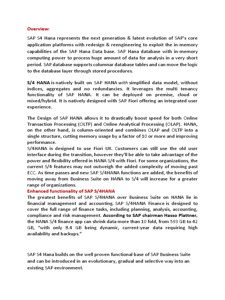 requirements due to this shift, SAP has introduced S4 Hana finance its first