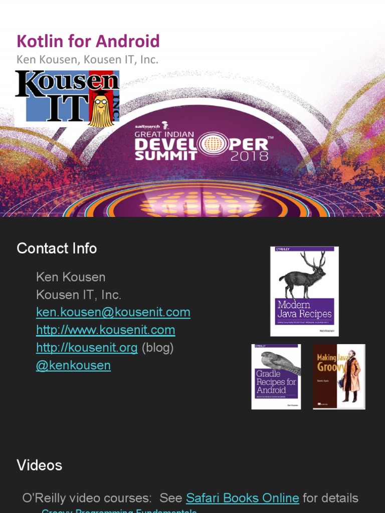 e.g., https://speakerdeck.com/svtk/1-intro-kotlin-workshop