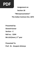agreement. Hence, the necessity of an action for misrepresentation is it must be against the