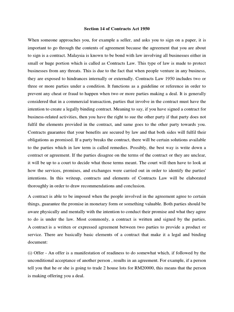 Section 14 of Contracts Act 1950