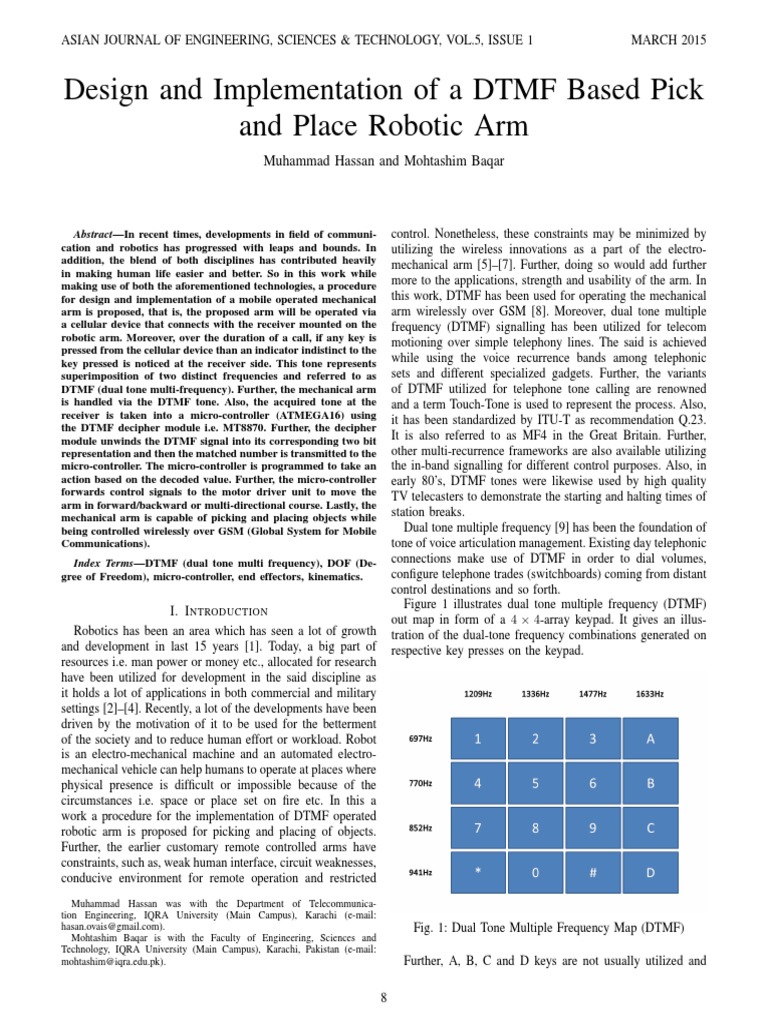 Robotics has been an area which has seen a lot of growth tration of the dual-tone frequency combinations generated on