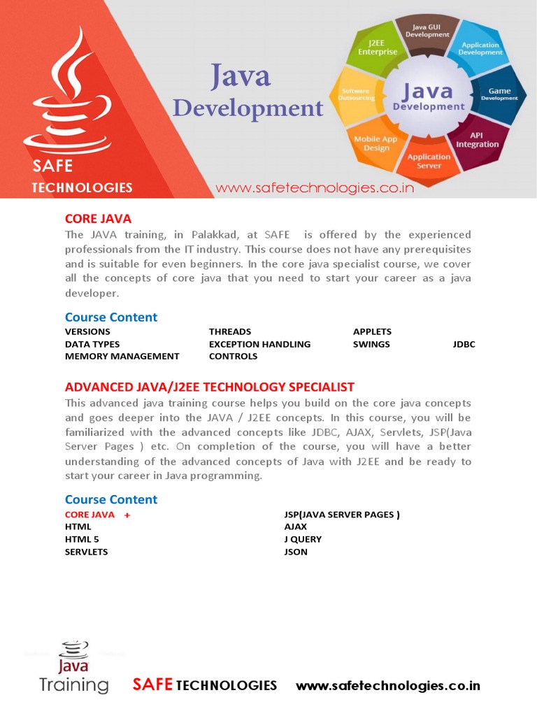 The JAVA training, in Palakkad, at SAFE is offered by the experienced