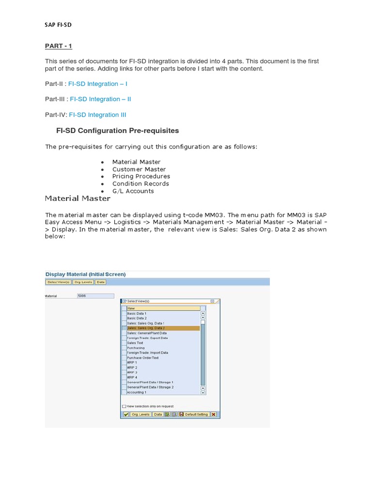 This series of documents for FI-SD integration is divided into 4 parts. This document is the