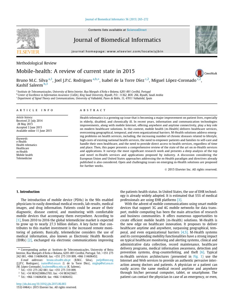 m-Health and applications. It surveys the most significant research work and presents a deep analysis of the top