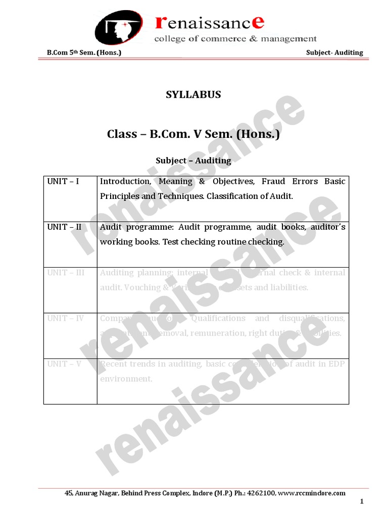 B.Com 5th Sem. (Hons.) Subject- Auditing