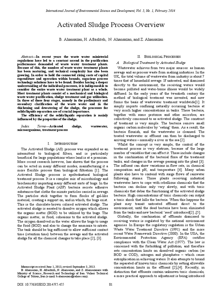 The Activated Sludge (AS) process was expanded as an treatment process is very abstruse, because of the large