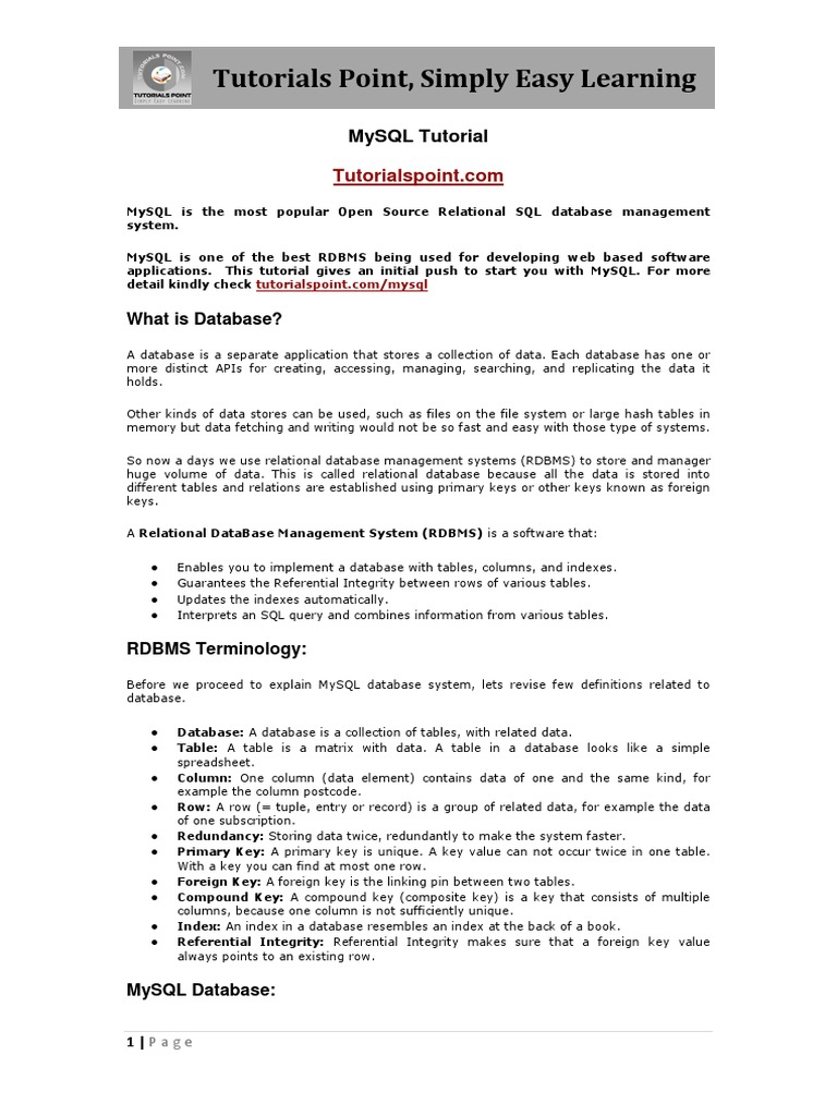 applications. This tutorial gives an initial push to start you with MySQL. For more