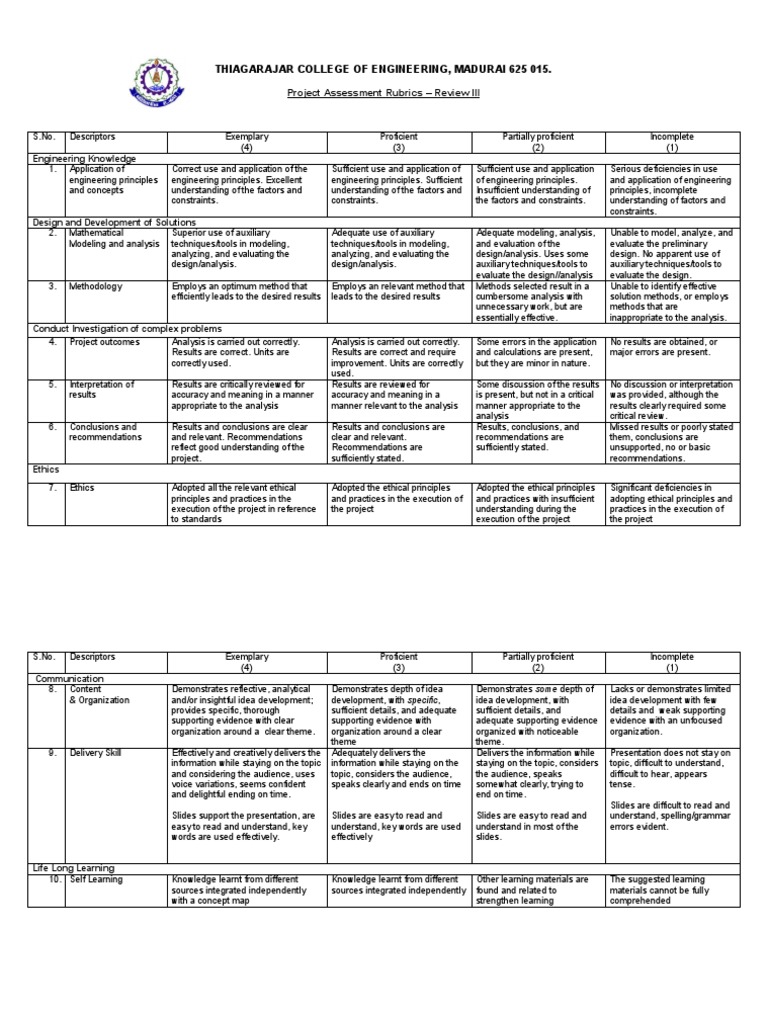 S.No. Descriptors Exemplary Proficient Partially proficient Incomplete