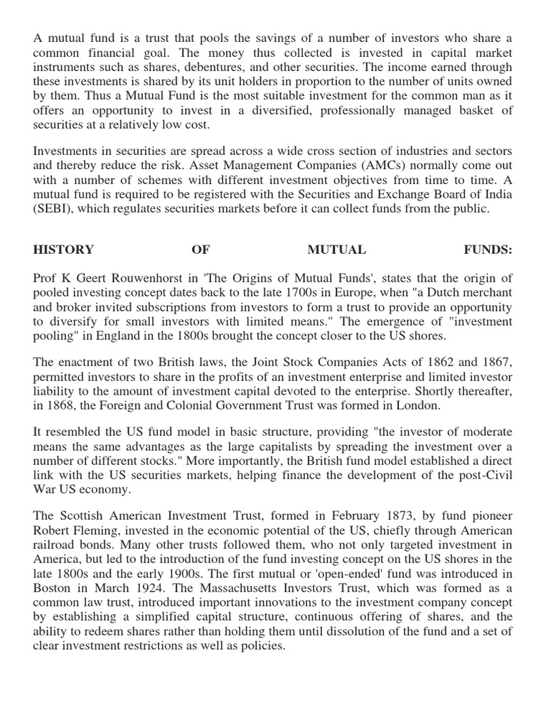 HISTORY OF MUTUAL FUNDS: