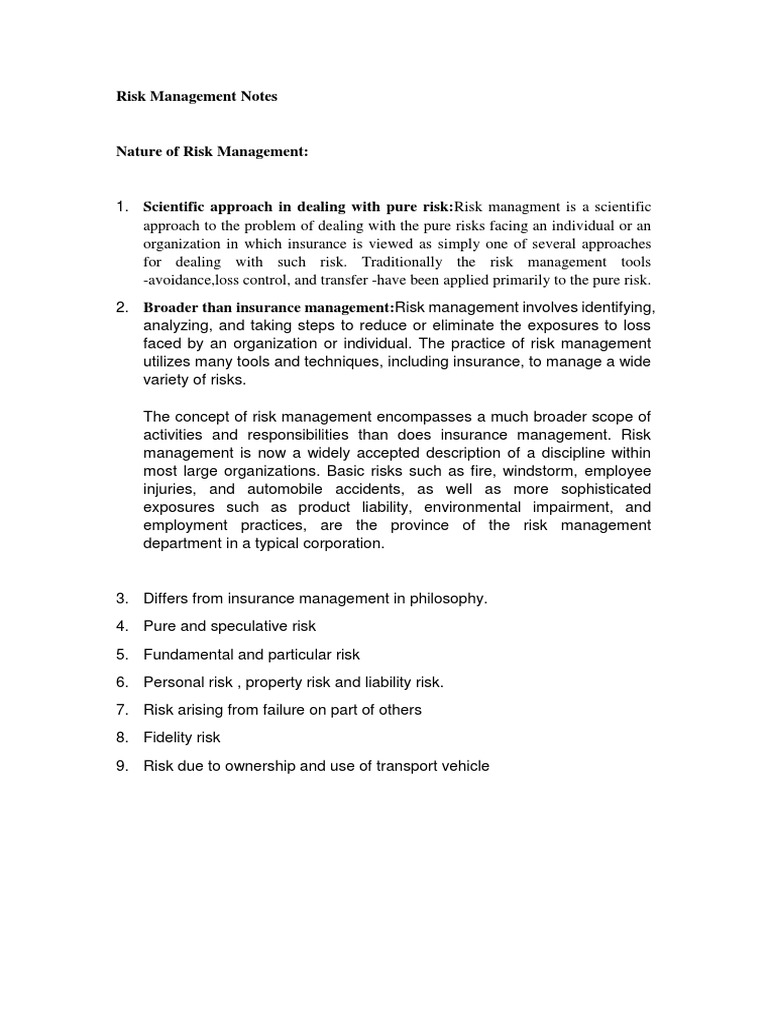 1. Scientific approach in dealing with pure risk:Risk managment is a scientific