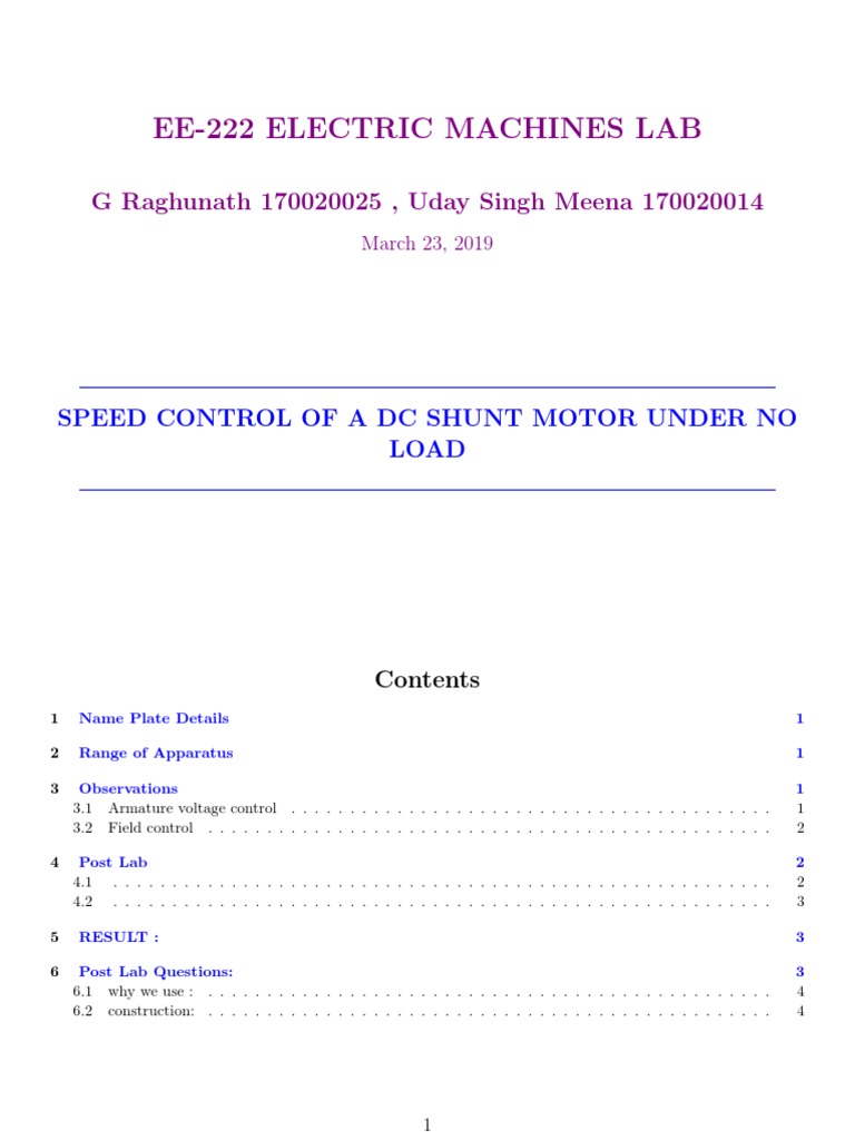SPEED CONTROL OF A DC SHUNT MOTOR UNDER NO