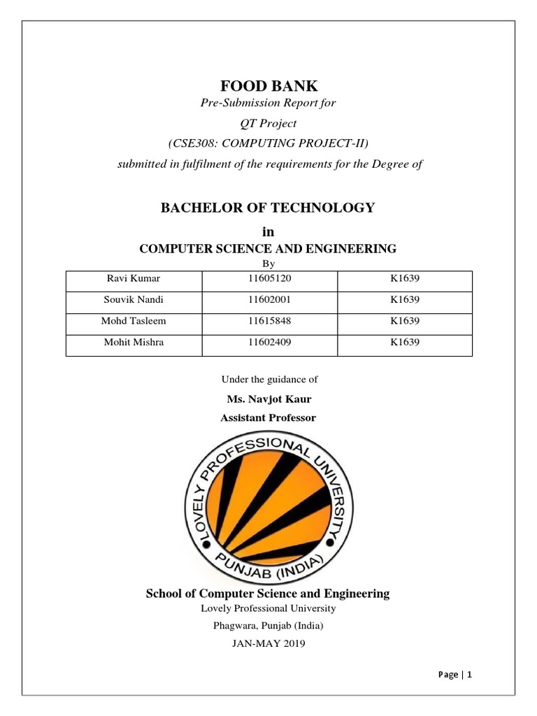 need for charity in terms of donation. This project presents ‘Food Bank’, a new internet-based