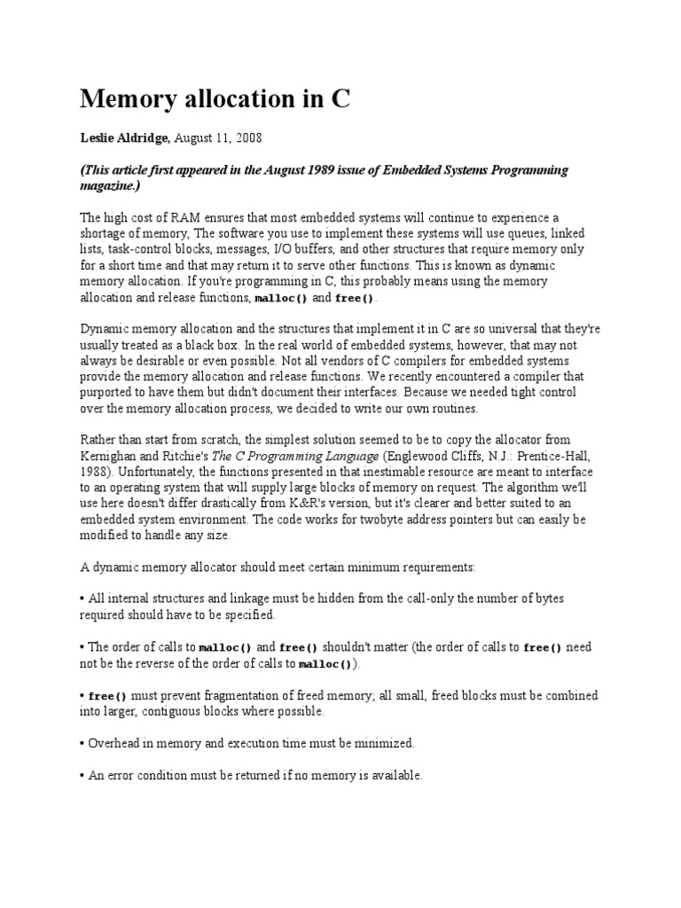 the result up and adds one unit for the header, which is part of the block allocated. For speed, the
