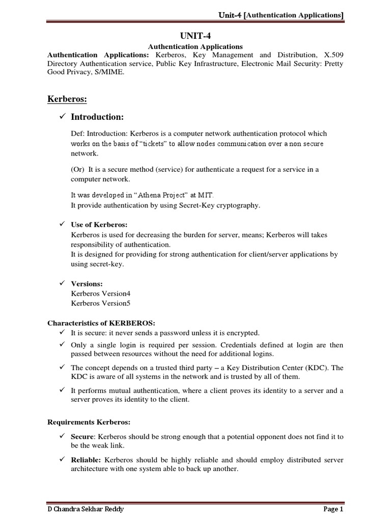 Authentication Applications: Kerberos, Key Management and Distribution, X.509