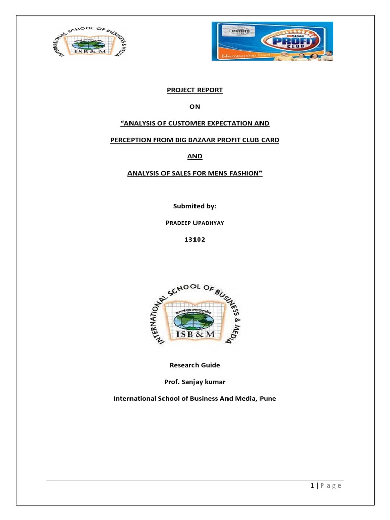 “ANALYSIS OF CUSTOMER EXPECTATION AND PERCEPTION FROM BIG BAZAAR PROFIT