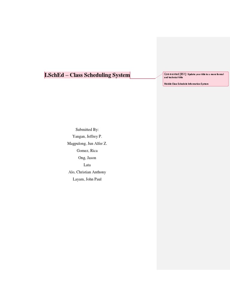 SchEd – Class Scheduling System Commented [BS1]: Update your title to a more formal