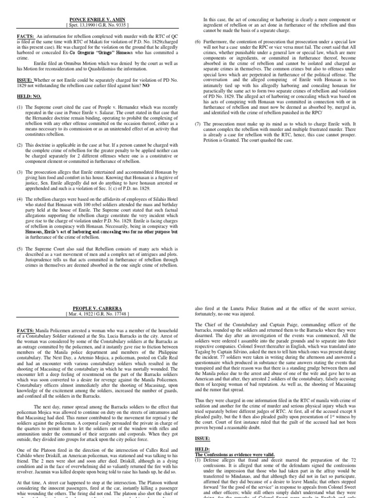 (1) The Supreme court cited the case of People v. Hernandez which was recently furtherance of rebellion and must now be deemed as absorbed by, merged in,