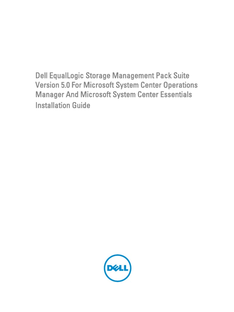 This guide describes how to install the Dell EqualLogic Storage Management Pack Suite version 5.0 for Microsoft