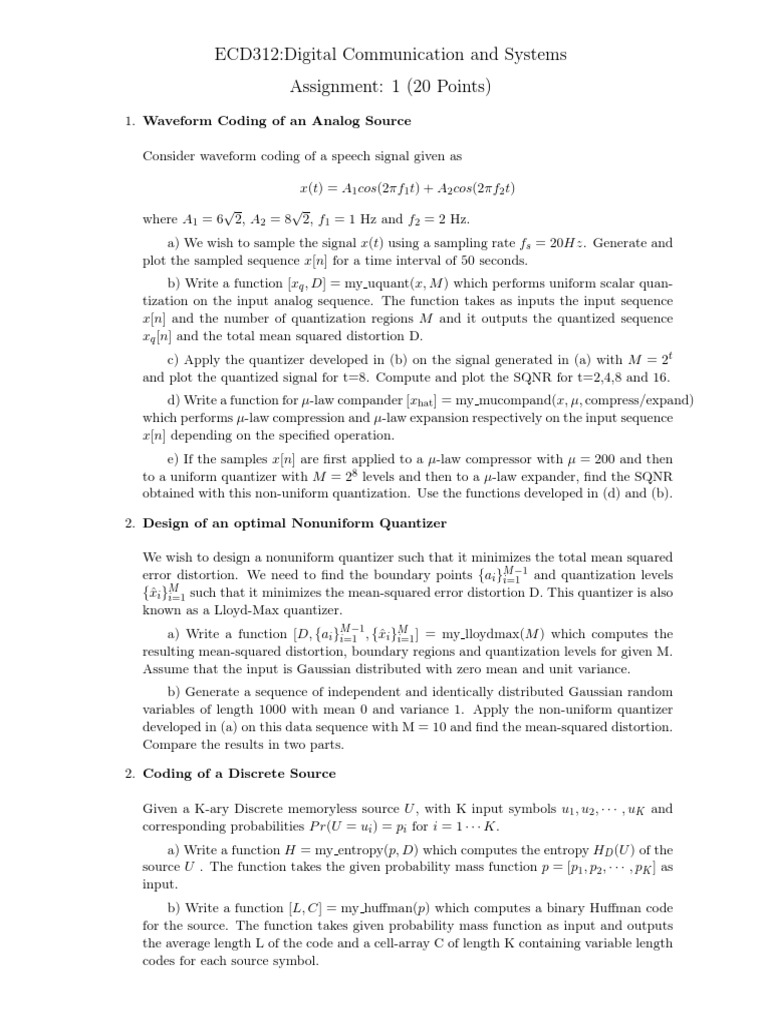 • Submit a soft copy of your well documented MATLAB/C/C++ programs. Include a
