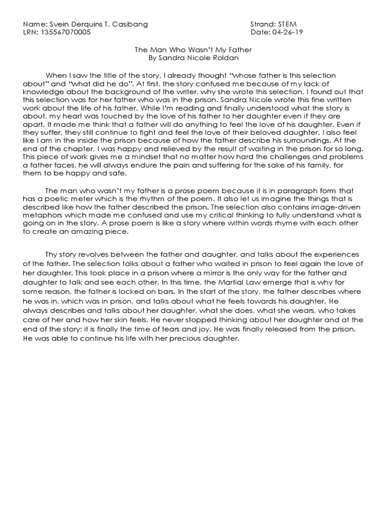 The man who wasn’t my father is a prose poem because it is in paragraph form that