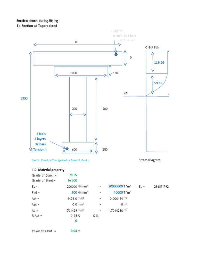 ( Note: flared portion ignored in flexural check ) Stress Diagram.