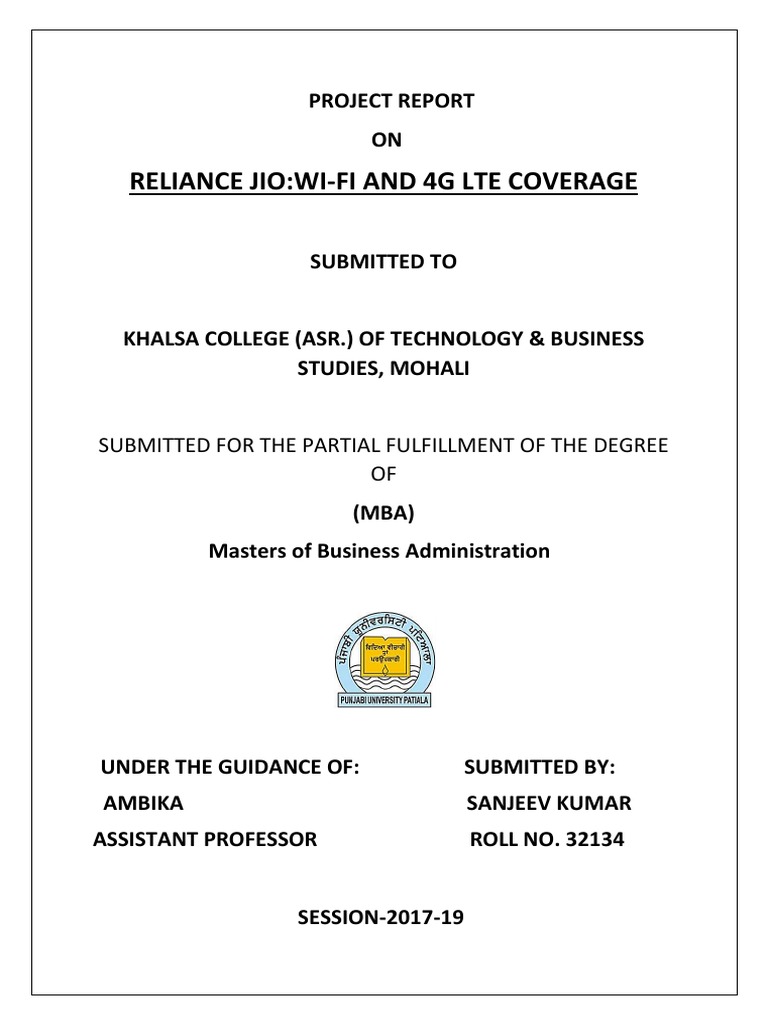 report on “ Reliance JIO: WI-FI and 4G LTECoverage” in