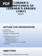 Corder (1967) noted: “a learner’s errors are significant in that they