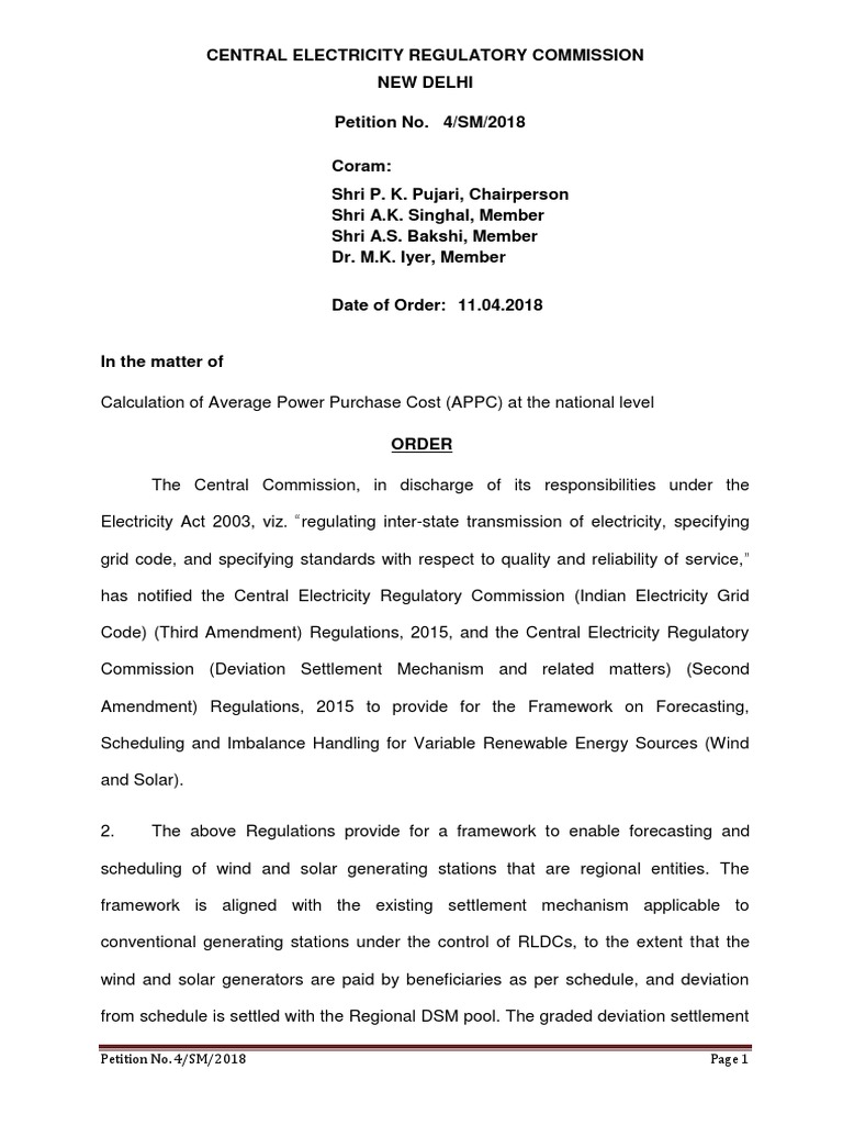 Average Power Purchase Cost (APPC) at the national level‟ (Petition No.