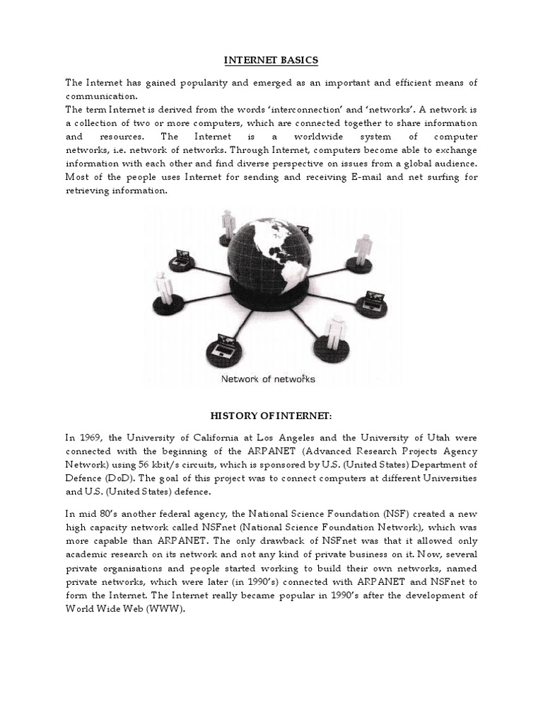 The term Internet is derived from the words ‘interconnection’ and ‘networks’. A network is