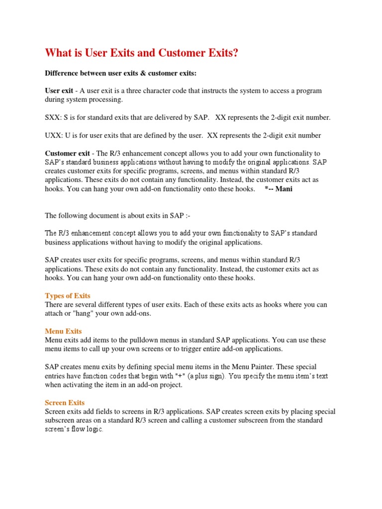User exits (Function module exits) are exits developed by SAP. The exit is implementerd as a